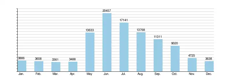 Mackenzie monthly mean discharge at Arctic Red River (m3/s)[42]