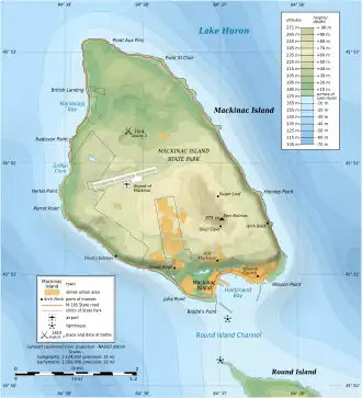![]() Topographic map of Mackinac island | |
