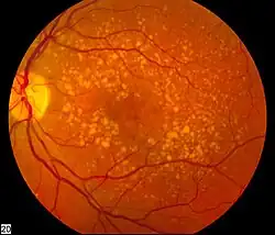 - ^ García-Layana A, Cabrera-López F, García-Arumí J, Arias-Barquet L, Ruiz-Moreno JM (October 2017). "Early and intermediate age-related macular degeneration: update and clinical review". Clinical Interventions in Aging. 12: 1579–87. doi:10.2147/cia.s142685. PMC 5633280. PMID 29042759.