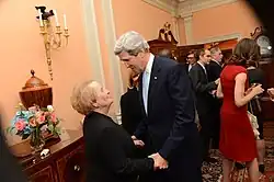 U.S. Secretary of State John Kerry greets Albright, February 6, 2013