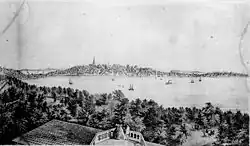 Doty named his city for James Madison,[22] the fourth President of the U.S., who had died on June 28, 1836, and he named the streets for the other 38 signers of the U.S. Constitution.[23] Although the city existed only on paper, the territorial legislature voted on November 28, 1836, to make Madison its capital, largely because of its location halfway between the new and growing cities around Milwaukee in the east and the long-established strategic post of Prairie du Chien in the west, and between the highly populated lead mining regions in the southwest and Wisconsin's oldest city, Green Bay, in the northeast.[24][25]