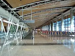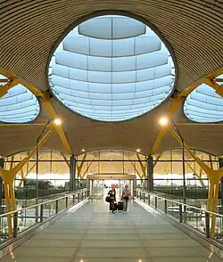 Adolfo Suárez Madrid–Barajas Airport (IATA: MAD, ICAO: LEMD) is the main international airport serving Madrid, the capital of Spain, and its metropolitan area. At 3,050 ha (7,500 acres; 30.5 km2) in area, it is the second-largest airport in Europe by physical size behind Paris Charles de Gaulle Airport.[5][6] In 2019, 61.8 million passengers travelled through Madrid–Barajas, making it the country's busiest airport as well as Europe's fifth-busiest.