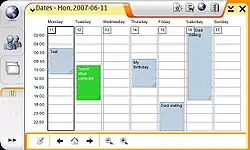 Vertically down the left hand side of the screen is the taskbar, with applets for the web browser, communications, and application menu by default. These can be modified using third party plug-ins (e.g. to provide a favorites or command menu).