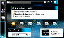 The remaining large part of the display contains Home applets (roughly analogous to Apple Inc.'s Dashboard widgets), which can display data as well as serving as a shortcut to applications. These include an RSS reader, Internet radio player, Google search box and contact list by default, but can also be expanded with third party plug-ins.