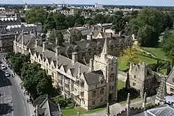 The college grounds stretch north and east from the college, and include most of the area bounded by Longwall Street, the High Street (where the porter's lodge is located), and St Clement's. The college features a variety of architectural styles, and has been described as "a medieval nucleus with two incomplete additions, one from the eighteenth and one from the nineteenth century".[31]