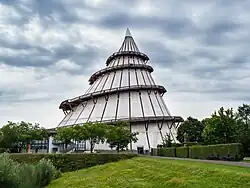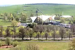 View over Elbauenpark with Jahrtausendturm -