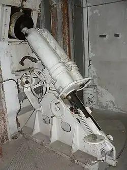Side view diagram of the operation of a retractable turret: 75 mm gun of block 3 in Ouvrage Schoenenbourg