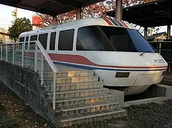 In Vancouver, Canada, the HSST-03 by HSST Development Corporation (Japan Airlines and Sumitomo Corporation) was exhibited at Expo 86,[47] and ran on a 400-metre (0.25 mi) test track that provided guests with a ride in a single car along a short section of track at the fairgrounds.[48] It was removed after the fair. It was shown at the Aoi Expo in 1987 and is now on static display at Okazaki Minami Park.