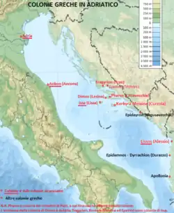 - ^ Braccesi, Lorenzo (1979). Grecità adriatica. Un capitolo della colonizzazione greca in Occidente (in Italian) (2nd ed.). Pàtron. p. 450. ISBN 978-88-555-0935-0.