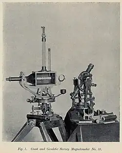 Francis Ronalds and Charles Brooke independently invented magnetographs in 1846 that continuously recorded the magnet's movements using photography, thus easing the load on observers.[15] They were quickly utilised by Edward Sabine and others in a global magnetic survey and updated machines were in use well into the 20th century.[16][17]