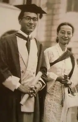After the war, Mahathir graduated from secondary school with the highest rank and enrolled to study medicine at the King Edward VII College of Medicine in Singapore.[18] Mahathir studied medicine at what was then called University of Malaya, later renamed University of Singapore.[19] When the university granted him an honorary degree in November 2018, he said "I will always value my stay in Singapore for nearly six years."[20] During his college years, Mahathir developed a passion for driving, often travelling long distances, including from Singapore to his hometown in Alor Setar, in his convertible.[21] In 1947, Mahathir, writing under the pen name 'Che Det' in The Sunday Times, published an article titled Malay Women Make Their Own Freedom, in which he discussed the struggle of Malay women in the post-war period and stated, "It is up to the men and especially the fathers, to realise that they can no longer confine their womenfolk to the kitchen."[12]