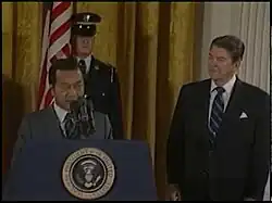 In 1981, facing health issues and advancing age, Hussein Onn decided to step down, paving the way for Mahathir to take over.[74] In his first speech as UMNO president, Mahathir said that Malaysia and the majority Malays had a bright future, but achieving it required a just, strong, and stable government.[75] A few days before being sworn in, Mahathir told Bernama that there would be no major changes in Malaysia's policies, particularly in foreign affairs, trade, and education, while also emphasizing Islam's continued prominence as the official religion.[76][77]