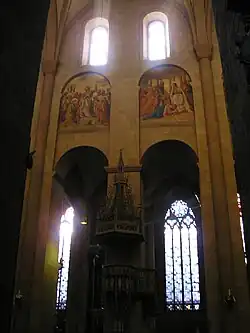 The first post-Romanesque addition to the cathedral was the western rood screen. This was done in the Gothic style at the time of the western renovations. Following this example, the intersect area was heavily renovated in the next few centuries in the Gothic style.