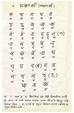 - ^ a b The notation a can be used for non-final weak schwa, Maithili weakens the non-final schwa, instead of deleting it (pronounced as /ə̆/). Grierson also used a for the purpose, but sometimes used apostrophe (') also for the purpose.