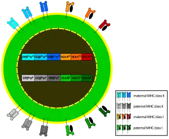 MHC alleles are expressed in codominant fashion.[60] This means the alleles (variants) inherited from both parents are expressed equally: