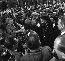 In March 1961, Cyprus was admitted as a member state of the Commonwealth of Nations and Makarios represented the island at the 1961 Commonwealth Prime Ministers' Conference. He attended the 1st Summit of the Non-Aligned Movement in Belgrade in September 1961, and troubled the governments in London and Washington, D.C. with his lukewarm policy towards the West. During his stay in Belgrade, alongside the conference he also led the liturgical celebration at the St. Michael's Cathedral of the Serbian Orthodox Church.[5] This was seen in the U.S. as demonstrating a tendency towards communism;[6] Makarios was now being vilified in the American press as the "Castro of the Mediterranean"[7] although he had by now been rehabilitated in the British press and was affectionately nicknamed "Black Mak" on account of his clerical garb.