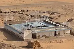 Very little is known about the history of Makuria after 1366. In 1367 the Mamluks sent letters to two Nubian rulers. One, Apakyre, had his seat in Gebel Adda and the other, a certain Shihab al-Din Majid, in Qasr Ibrim. Both were very likely the protagonists of the previous civil war. In 1397 a presumabely Makurian king called Nazir was dethroned by his unnamed cousin and fled to Egypt, helping the Mamluks against a Bedouin coalition led by the Banu Kanz.[144] The Banu Kanz were finally expelled from Aswan in 1412/3 and soon intermarried with the Nubians as far south as Wadi es-Sebua, if not Korosko. This resulted in the ethnogenesis of the Muslim-Nubian Kunuz tribe,[145] while Makuria lost the border to Egypt for good.[146] A graffito from Gebel Adda that likely dates to the 14th–15th centuries mentions an Eparch called Akiri and some unnamed king (previously read as "Taanego"),[147] while others mention a king Koudlaniel as well as a certain king Tienossi of Ilenat.[148] The last known Makurian king is Joel, who is mentioned in two inscriptions and two documents, one of which from 1463.[e] Perhaps it was under Joel that Makuria experienced one final renaissance.[150][151]