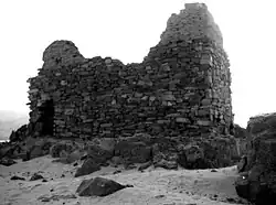 By the early 4th century, if not before, the Kingdom of Kush with its capital Meroe was collapsing.[9] The region which would later constitute Makuria, i.e. the Nile Valley between the third Nile cataract and the great Nile bend of the fourth/fifth cataract, has been proposed to have seceded from Kush already in the 3rd century. Here, a homogenous and relatively isolated culture dubbed as "pre-Makuria" developed.[10] During the 4th and 5th centuries, the region of Napata, located near the fourth cataract and formerly being one of the most important political and sacred places of Kush, served as the center for a new regional elite buried in large tumuli like those at el Zuma or Tanqasi.[11] There was a significant population growth[12] accompanied by social transformations.[13] As a result the Kushites were absorbed into the Nubians,[14] a people originally from Kordofan[15] that had settled in the Nile Valley in the 4th century AD.[16] Thus, a new Makurian society and state emerged[13] by the 5th century.[17] In the late 5th century one of the first Makurian kings[18] moved the power base of the still-developing kingdom from Napata to further downstream, where the fortress of Dongola, the new seat of the royal court, was founded[19] and which soon developed a vast urban district.[20] Many more fortresses were built along the banks of the Nile, probably not intended to serve a military purpose, but to foster urbanization.[18]