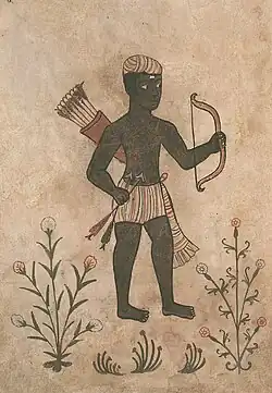Relations with Egypt worsened with the ascension of the Mamluks under Baybars in 1260. Already in 1265 a Mamluk army allegedly raided Makuria as far south as Dongola.[114] Meanwhile they also expanded southwards along the African Red Sea coast.[115] In 1268/9 king David usurped the throne and in 1272 sacked the Red Sea port of Aidhab,[116] located on an important pilgrimage route to Mecca.[117] In response the Mamluks sent a punitive expedition to Lower Nubia.[118] After David attacked another Mamluk town, Aswan, the Mamluks dispatched a large army on 20 January 1276, accompanied by a relative of David called Mashkouda. After conquering Gebel Adda and Meinarti it met the Nubian army at Dongola, defeating it decisively. Afterwards Dongola was sacked.[119] David fled to the Kingdom of al-Abwab in the south,[120] which had once been Alodia's northernmost province, but was now a kingdom of its own.[121] Its king, Adur, handed David over to Baybars, who imprisoned him and other family members in Cairo.[122]