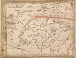 Another account on the origin of the naming of Malacca claims that during the reign of Muhammad Shah (1424–1444), Arab merchants called the kingdom 'Malakat' (Arabic for 'congregation of merchants') because it was home to many trading communities.[24] One theory suggests, as mentioned in the Suma Oriental by Tomé Pires, that it is derived from the Javanese terms melayu or mlayu (to steadily accelerate or to run), to describe the strong current of a river in Sumatra that today bears the name Sungai Melayu ('Melayu river') which was later possibly adopted to be Melaka as denoting a place for the fleeing prince.[25]