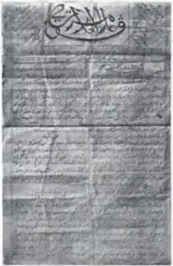 Among the oldest surviving letters written in Malay are the letters from Sultan Abu Hayat of Ternate, in the Maluku Islands of present-day Indonesia, dated around 1521–1522. The text is addressed to the king of Portugal, following contact with Portuguese explorer Francisco Serrão.[25] The letters show a sign of non-native usage, as the Ternateans used (and still use) the unrelated Ternate language, a West Papuan language, as their first language. Malay was used solely as a lingua franca for inter-ethnic communications.[25]