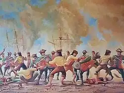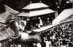 In 1299, through the support of the loyal servants of the empire, the Orang laut, a Malay prince of Palembang origin, Sang Nila Utama established the Kingdom of Singapura in Temasek.[73] His dynasty ruled the island kingdom until the end of the 14th century, when the Malay polity once again faced the wrath of Javanese invaders. In 1400, his great-great-grandson, Parameswara, headed north and established the Malacca Sultanate.[74] The new kingdom succeeded Srivijaya and inherited much of the royal and cultural traditions, including a large part of the territories of its predecessor in Palembang.[75][76][77]