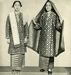 Ladies from Palembang clad in their traditional attire, known as Baju Kurung made from Songket. The dress is commonly associated with women of Malay extraction.