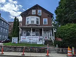 In late 1945, Malcolm returned to Boston, where he and four accomplices committed a series of burglaries targeting wealthy white families.[36] In 1946, he was arrested while picking up a stolen watch he had left at a shop for repairs,[37] and in February began serving a sentence of eight to ten years at Charlestown State Prison for larceny and breaking and entering.[38] In 1947, he was transferred to Concord Reformatory, where he served 15 months before transferring again to Norfolk Prison Colony.[39][40][41]