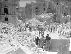 Before the Second World War, Valletta was the location of the Royal Navy's Mediterranean fleet headquarters; however, despite Winston Churchill's objections,[124] the command was moved to Alexandria, Egypt, in 1937 out of fear that it was too susceptible to air attacks from Europe.[124][125][126] During the war, Malta played an important role for the Allies; being a British colony, situated close to Sicily and the Axis shipping lanes, Malta was bombarded by the Italian and German air forces. Malta was used by the British to launch attacks on the Italian Navy and had a submarine base. It was also used as a listening post, intercepting German radio messages including Enigma traffic.[127] The bravery of the Maltese people during the second siege of Malta moved King George VI to award the George Cross to Malta on a collective basis on 15 April 1942. Some historians argue that the award caused Britain to incur disproportionate losses in defending Malta, as British credibility would have suffered if Malta had surrendered, as British forces in Singapore had done.[128] A depiction of the George Cross now appears on the Flag of Malta and the country's arms.
