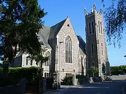 The town developed around its 11th-century priory, a Benedictine monastery, of which only the large parish church and the abbey gateway remain.[15] Several slightly different histories explain the actual founding of the religious community. Legend tells that the settlement began following the murder of St. Werstan, a monk of Deerhurst, who fled from the Danes and took refuge in the woods of Malvern, where the hermitage had been established.[8]: 11 [24][25] St Werstan's oratory is thought to have been on the site of St Michael's Chapel, which is believed to have stood on the site of Bello Sguardo, a Victorian Villa, which was built on the site of Hermitage Cottage. The cottage was demolished in 1825 and ecclesiastical carvings were found in it, along with a mediaeval undercroft, human bones, and parts of a coffin.[26] Although the legend may be monastic mythology, historians have however concluded that St. Werstan was the original martyr.[27]
