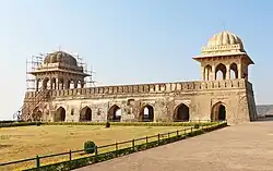 Dilawar Khan, previously Malwa's governor under the rule of the Delhi sultanate, declared himself sultan of Malwa in 1401 after the Mughal conqueror Timur attacked Delhi, causing the break-up of the sultanate into smaller states. Khan started the Malwa Sultanate and established a capital at Mandu, high in the Vindhya Range overlooking the Narmada River valley. His son and successor, Hoshang Shah (1405–35), developed Mandu as an important city. Hoshang Shah's son, Ghazni Khan, ruled for only a year and was succeeded by Mahmud Khalji (1436–69), the first of the Khalji sultans of Malwa, who expanded the state to include parts of Gujarat, Rajasthan, and the Deccan. The Muslim sultans invited the Rajputs to settle in the country. Rajputs from various clans came and settled in Malwa. They came from different parts of Rajasthan, Gujarat, and many other regions of India. In the early 16th century, the sultan sought the aid of the sultans of Gujarat to counter the growing power of the Rajputs, while the Rajputs sought the support of the Sesodia Rajput kings of Mewar. During that time Much of the Malwa was conquered by Rana Sanga of Mewar who appointed one of his close allies Medini Rai as ruler of Malwa under his lordship. Chanderi was capital of his kingdom.[12]After the defeat of Rajput confederation in Battle of Khanwa near Agra against Babur which was fought for Supremacy of Northern India between Rajputs and Mughals.[13]Babur then sieged Chanderi offering Shamsabad to Medini rai instead of Chanderi as it was the capital of his kingdom and was of great importance but Rai refused Babur's offer and chose to die. He was defeated by Babur in January 1528 at Battle of Chanderi and Babur conquered the fort.[14]