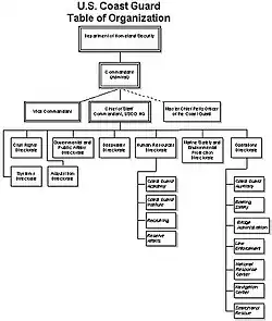 An organization chart for the United States Coast Guard shows the hierarchy of managerial roles in that organization.