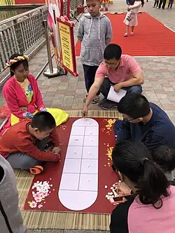 In a process known as sowing, all the seeds from a hole are dropped one by one into subsequent holes in a motion wrapping around the board. Sowing is an apt name for this activity, since not only are many games traditionally played with seeds but placing seeds one at a time in different holes reflects the physical act of sowing. If the sowing action stops after dropping the last seed, the game is considered a single lap game.