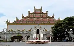 On 28 March 2025, a magnitude 7.7 earthquake with an epicenter northwest of the city caused extensive damage.[27] The earthquake killed more than 5,300 people across Myanmar including 3,300 deaths in Mandalay and the surrounding townships.[28] At least 1,736 people were killed in Mandalay District alone. The National Unity Government estimated that 17,637 homes were damaged across the region.[29] In Mandalay, major historical sites, such the gates and walls of Mandalay Palace, Mahamuni Buddha Temple, and Shwesayan Pagodas incurred significant damage.