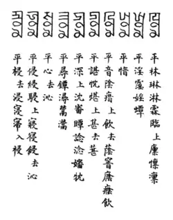 A page of the Menggu Ziyun, covering the syllables tsim to lim