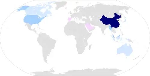 Countries and regions where Mandarin is spoken as L1 or L2