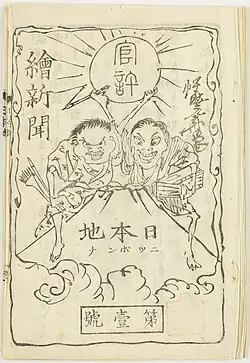 E-shimbun Nippon-chi (1874), published by Kanagaki Robun and Kawanabe Kyosai, is credited as the first manga magazine ever made.[82]