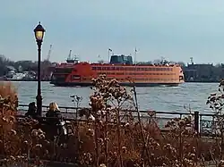 - ^ Facts About the Ferry Archived December 25, 2019, at the Wayback Machine, New York City Department of Transportation. Accessed August 28, 2012. "On a typical weekday, five boats make 109 trips, carrying approximately 65,000 passengers. During rush hours, the ferry runs on a four-boat schedule, with 15 minutes between departures."