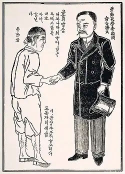 Political cartoon slowly reemerged following the establishment of the Republic of Korea (commonly known as South Korea) in 1948.[11] Popular artist Kim Yong-hwan started Korea's first comic magazine, Manhwa Haengjin, in 1948,[12] but it was quickly shut down because the authorities disapproved of the cover.