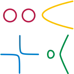 Manifolds need not be closed; thus a line segment without its end points is a manifold. They are never countable, unless the dimension of the manifold is 0. Putting these freedoms together, other examples of manifolds are a parabola, a hyperbola, and the locus of points on a cubic curve y2 = x3 − x (a closed loop piece and an open, infinite piece).