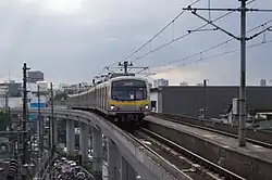 The Manila Light Rail Transit System, commonly known as the LRT, is an urban rail transit system that primarily serves Metro Manila, Philippines. Although categorized as a light rail system because it originally used light rail vehicles, it presently has characteristics of a rapid transit system, such as high passenger throughput, exclusive right-of-way, and later use of full metro rolling stock. The LRT is jointly-operated by the Light Rail Transit Authority (LRTA), a government corporation attached to the Department of Transportation (DOTr), and the Light Rail Manila Corporation (LRMC). Along with the Manila Metro Rail Transit System and the Metro Commuter Line of the Philippine National Railways, the system makes up Metro Manila's rail infrastructure.