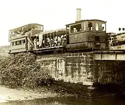 The system's roots date back to 1878 when an official from Spain's Department of Public Works for the Philippines submitted a proposal for a Manila streetcar system. The system proposed was a five-line network emanating from Plaza San Gabriel in Binondo, running to Intramuros, Malate, Malacañan Palace, Sampaloc and Tondo. The project was approved and in 1882, Spanish-German businessman Jacobo Zóbel de Zangroniz, Spanish engineer Luciano M. Bremon, and Spanish banker Adolfo Bayo, founded the Compañia de los Tranvias de Filipinas to operate the concession granted by the Spanish colonial government. The Malacañan Palace line was later replaced with a line linking Manila to Malabon, and construction began in 1885. Four German-made steam-operated locomotives and eight coaches for nine passengers each, composed the initial assets of the company. The Manila-Malabon line was the first line of the new system to be finished, opening to the public on October 20, 1888, with the rest of the network opening in 1889.[19] From the beginning it proved to be a very popular line, with services originating from Tondo as early as 5:30 a.m. and ending at 7:30 p.m., while trips from Malabon were from 6:00 a.m. until 8:00 p.m., every hour on the hour in the mornings, and every half-hour beginning at 1:30 p.m.[20]