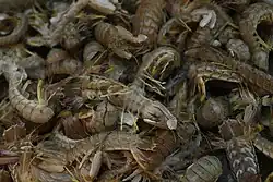 Mantis shrimp are also abundant along Vietnam's coast, known in Vietnamese as bề bề, tôm tích or tôm tít. In regions such as Nha Trang, they are called bàn chải, named for its resemblance to a scrub brush. The shrimp can be steamed, boiled, grilled, or dried, used with pepper, salt and lime, fish sauce and tamarind, or fennel.[56]