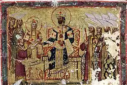 Three major theological controversies occurred during Manuel's reign. In 1156–1157 the question was raised whether Christ had offered Himself as a sacrifice for the sins of the world to the Father and to the Holy Spirit only, or also to the Logos (i.e., to Himself).[96] In the end a synod held at Constantinople in 1157 declared the doctrine of a single sacrifice to the Holy Trinity, producing a formula: "The precious blood of the Only Begotten was offered not only to the Father but also to the Son and the Holy Ghost, the one Godhead", despite the dissent of Patriarch of Antioch-elect Soterichos Panteugenos, who was subsequently dismissed.[97][98][33]