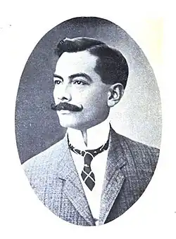 According to historian Augusto de Viana in his timeline of Baler, Quezon's father was a Chinese mestizo who came from the Parián (a Chinatown outside Intramuros) in Paco, Manila. He spoke Spanish in the Civil Guard and married María, a Spanish mestiza sired by the Spanish priest José Urbina de Esparragosa. Urbina had come to Baler to serve as its parish priest in 1847 from Esparragosa de la Serena, Cáceres Province, Spain.[7] Quezon is Chinese mestizo surname originally from Hokkien Chinese spelled in Spanish orthography used in the colonial period, possibly from the Chinese: 雞孫; Pe̍h-ōe-jī: ke-sun, with Chinese: ; Pe̍h-ōe-jī: ke and Chinese: ; Pe̍h-ōe-jī: sun; lit. 'grandson';[8][9] many Filipino surnames that end with "-zon", "-son", and "-chon" as the Hispancised form of the Hokkien Chinese: ; Pe̍h-ōe-jī: sun; lit. 'grandson'.[10]
