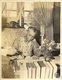 A sample of Quezon's voice is preserved in a recorded speech, "Message to My People", which he delivered in English and Spanish.[82] Quezon recorded it while he was President of the Senate "in the 1920s, when he was first diagnosed with tuberculosis and assumed he didn't have much longer to live," according to his grandson Manuel L. Quezon III.[83]