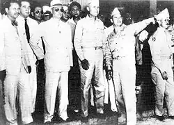 Having enrolled prior to World War II as an officer in the reserves, Roxas was made liaison officer between the Commonwealth government and the USAFFE headquarters of General Douglas MacArthur. On December 7, 1941, Japan went to war against the United States, bombing the U.S. naval base in Pearl Harbor, Hawaii, while also bombing American bases in the Philippines.[23] Shortly after, Japanese invasion forces landed on Luzon, the largest and most populous of the islands of the Philippine archipelago.[23] MacArthur had claimed that the American–Filipino forces under his command would stop any Japanese invasion "on the beaches", but instead the Japanese forces marched on Manila, the capital and largest city of the Philippines.[23] Roxas accompanied President Quezon to Corregidor where he supervised the destruction of Philippine currency to prevent its capture by the Japanese. When Quezon left Corregidor, Roxas went to Mindanao to direct the resistance there. It was prior to Quezon's departure that he was made executive secretary and designated as successor to the presidency in case Quezon or Vice President Sergio Osmeña were captured or killed. On January 3, 1942, President Quezon presented General MacArthur with a secret guaranty of $500,000.[24][25] The payment was related to the Filipino concept of utang na loob, where one offers a lavish gift in order to create a reciprocal obligation from the individual who receives the gift.[25] Through the payment was legal, it was questionable from an ethical perspective, and MacArthur always kept the payment secret, which did not become public knowledge until 1979.[25] Later that year, Quezon offered payment to General Dwight D. Eisenhower, which he refused, saying that as a United States Army official, his first loyalty was to the United States, which made accepting such a payment as morally wrong in his viewpoint.[25] Roxas was one of the few people who did know about Quezon's gift to MacArthur.[26]