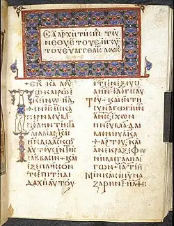 A 14th-century Armenian manuscript, with painting by Sargis Pitsak. The first page of the Gospel of Mark. Cod. 2627, fol. 436 r. (Matenadaran)