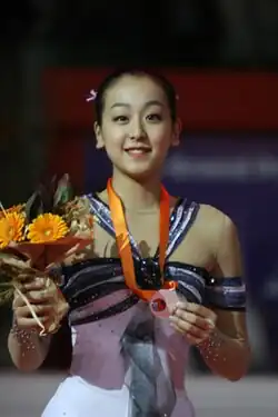 Mao Asada (浅田 真央, Asada Mao; born 25 September 1990) is a Japanese former competitive figure skater. She is the 2010 Olympic silver medalist, a three-time World champion (2008, 2010, 2014), a three-time Four Continents champion (2008, 2010, 2013), and a four-time Grand Prix Final champion (2005–06, 2008–09, 2012–13, 2013–14). She is the first female figure skater who has landed three triple Axel jumps in one competition, which she achieved at the 2010 Winter Olympics.
