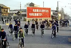 Beijing, 1978. The billboard reads, "Long Live Marxism, Leninism and Mao Zedong Thought!"